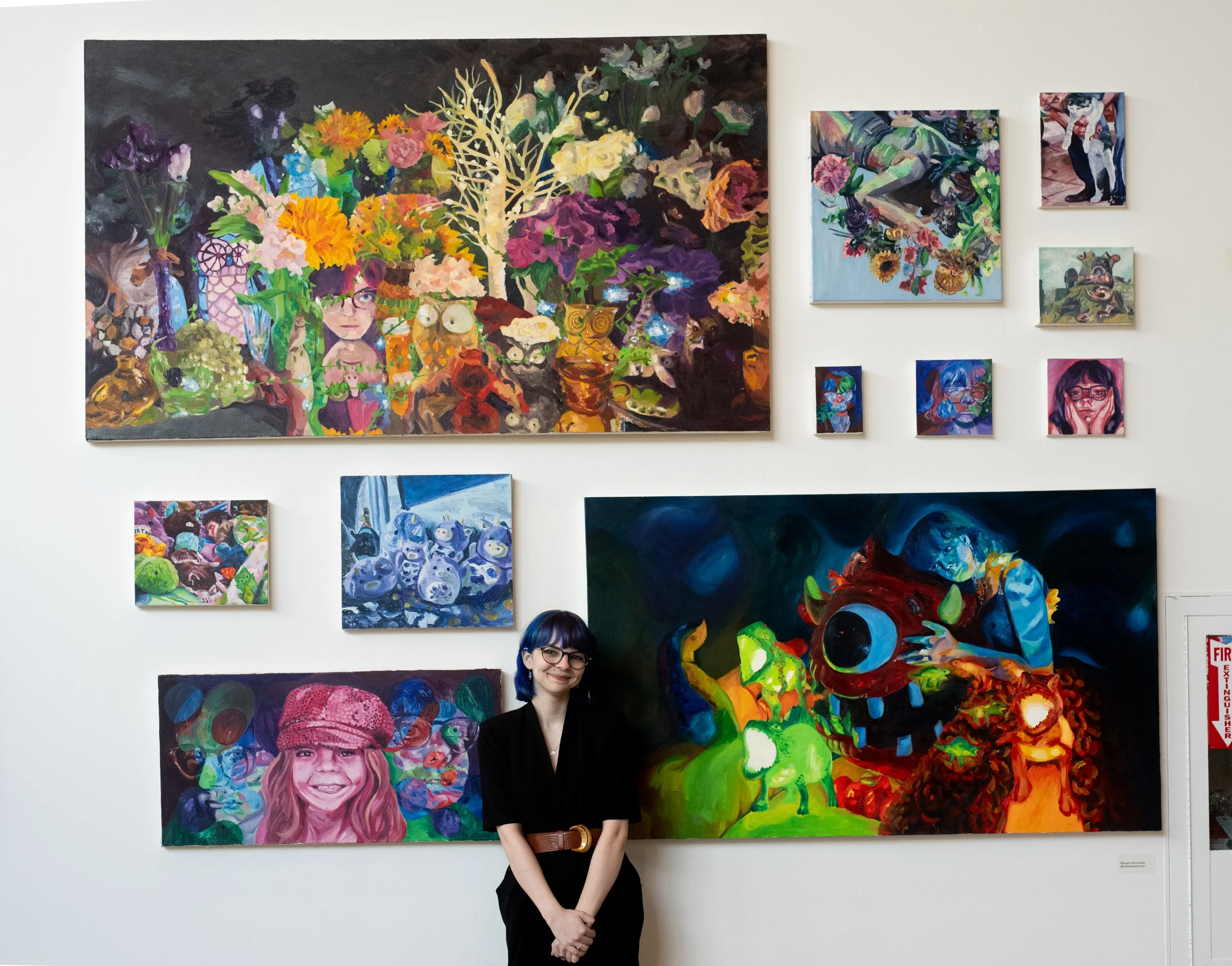 Morgan’s curatorial and studio work have been featured in exhibitions throughout the Boston area. She has curated and installed different shows such as The Art of SGA, Pet Portraits!, and the 2023, 2024, and 2025 All School Shows at MassArt. In 2024, she presented her debut solo exhibition Dissociation Station.
